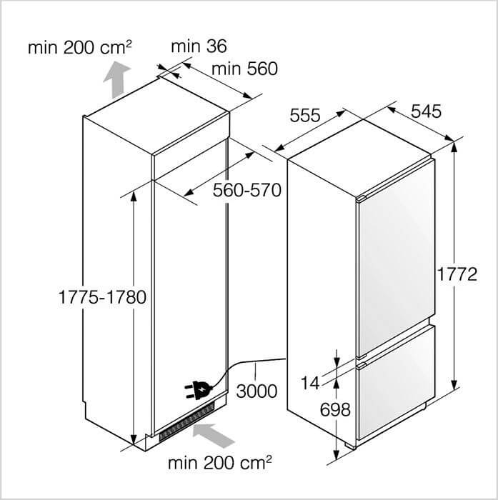 Marke: ASKO, Kühl-Gefrierkombination Einbau ASKO EXCLUSIVE, 0°-Zone, No Frost, Stand/Einbau: Einbaugerät, Türtyp: Festtür-Montage; SoftSystem, Einbauart: Vollintegriert, Türanschlag: Rechts wechselbar, Klimaklasse: SN-T, Breitennorm: 60 cm, Nischenhöhe: EURO 1780 mm, Jahresverbrauch Energie: 203 kWh, Geräuschwert: 36 dB(A) re 1 pW, Geräuschemissionsklasse: C, Steuerung: hinter der Tür; Touch-Elektronik, Display: digital; LC-Display monochrom, Anzahl Klimazonen: 3, Umluft, Gefrierleistung: 5 kg/24h, Ice Maker: Nein, Fastfreeze: zeitgesteuert, Nutzinhalt Gesamt: 229 l, Nutzinhalt Kühlen: 104 l, Nutzinhalt 0°-Zone: 56 l, Nutzinhalt Gefrieren: 69 l, Beleuchtung: Ja; LED-Lichtpanel einseitig; LED-Beleuchtung DuraFresh- und Gefrierteil
