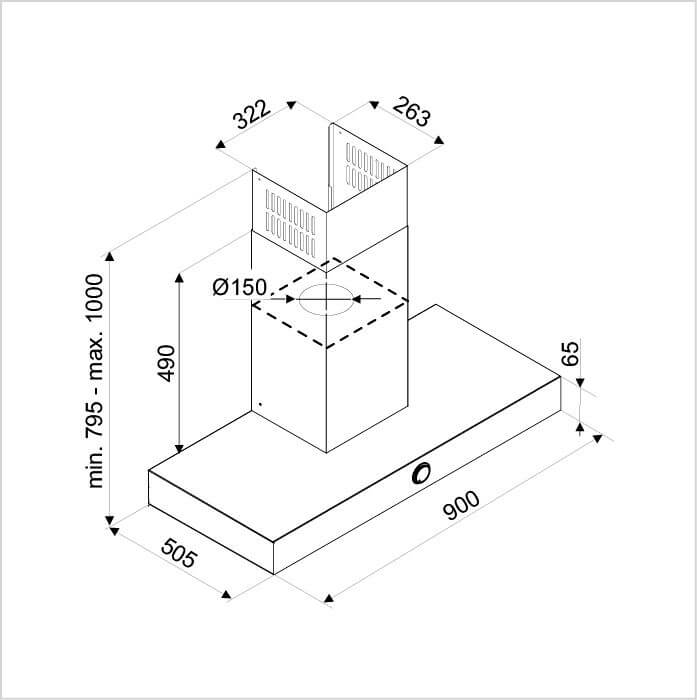 Marke: DE DIETRICH, Dunstabzugshaube De Dietrich, Einbauart: Wandhauben, Abluft, Umluft, Breitennorm: 90 cm, Farbe: Edelstahl schwarz, Energieeffizienzklasse: A+, Beleuchtung: Ja; Variable LED-Beleuchtung 2 x 3.5 W, Beleuchtungseffizienz: A, Fettabscheidgrad: E, Geräuschwert: 65 dB(A) re 1 pW, Steuerung: elektronische Steuerung; Turn & Press Knopf, Luftmenge (Förderleistung): 735 m³/h, Anzahl Geschwindigkeiten: 4, Strom: 10 A, Anschluss: 230 V, Leistung: 160 W, Filtersättigungsanzeige, Gerät mit Kaminschacht Höhe: 795 mm – 1’000 mm, Abluftstutzen Anschluss: ø 150